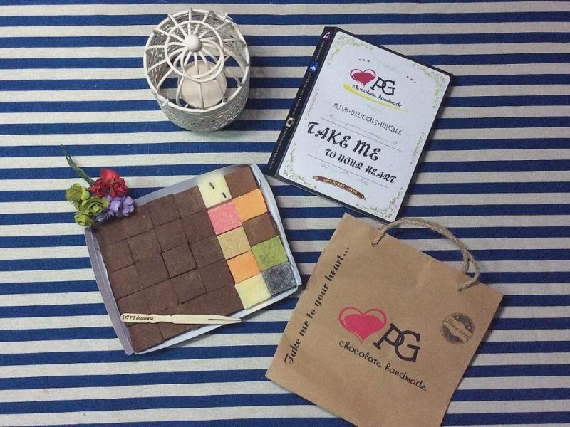 Ngoài các hương vị truyền thống vốn có của socola tươi (trà xanh, cacao), bạn vẫn có thể tận hưởng socola cùng các hương vị khác như bạc hà, bơ đậu phộng, dâu và sữa,... PG Chocolate Handmade đã nhận được rất nhiều phản hồi tốt từ khách hàng như: "Ấn tượng đầu tiên là cái hộp quá sức dễ thương luôn", "socola ngon với nhiều mùi vị đa dạng thoải mái cho khách lựa, giao hàng nhanh chóng"... Đặc biệt bạn có thể yêu cầu PG xếp theo hình trái tim nữa nhé (phụ thu 10.000 đồng).