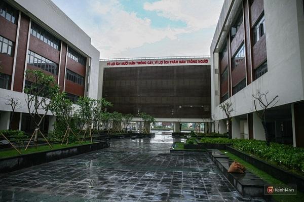 Đặc biệt, đây là một ngôi trường có cảnh đẹp vô cùng lãng mạn và hiện đại. Tường với thiết kế các dãy nhà học uốn lượn với hành lang rộng và thoáng. Nối với các dãy phòng học là dãy nhà hiệu bộ được thiết kế cong mềm mại. Một đài phun nước lớn được bố trí cách điệu ôm sát khu nhà hiệu bộ tạo nên một nơi check - in lý tưởng cho các bạn học sinh. Gần cổng chính của trường là một khuôn viên cây xanh, thảm cỏ được bố trí quanh trường, xen giữa các dãy nhà tạo không gian thoáng mát giúp học sinh hòa mình với thiên nhiên sau những giờ học căng thẳng, mệt mỏi.