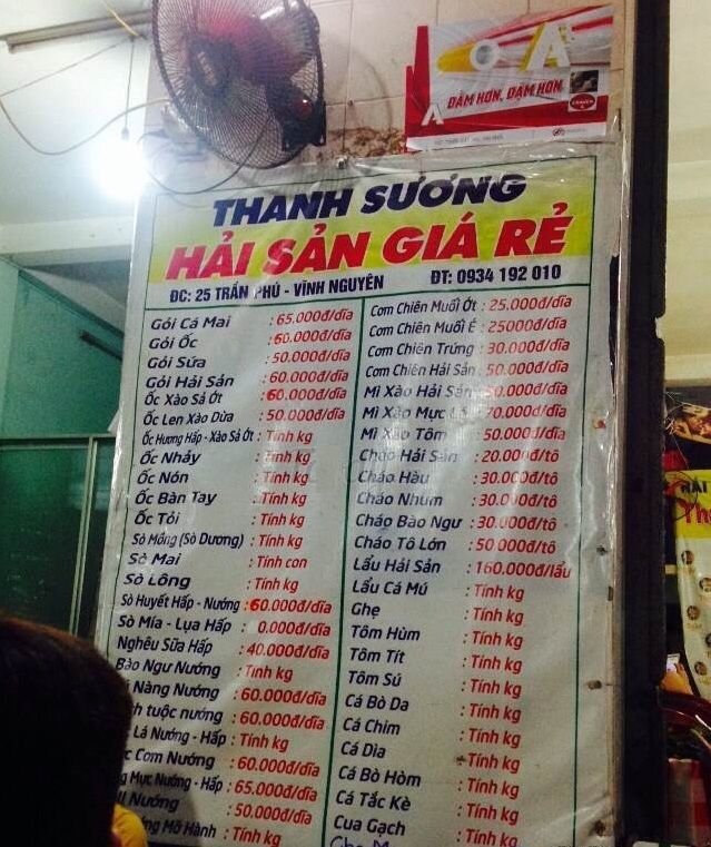 Gọi điệnNằm trong khu vực hải sản khu Cầu Đá, và dọc đường Trần Phú - Vĩnh Nguyên, Thanh Sương là một trong các quán được đánh giá ngon bổ rẻ hàng đầu giúp bạn nhậu cùng bạn bè và thưởng thức hải sản tẹt ga mà không lo cháy túi. Hải sản ở đây luôn tươi ngon, chế biến nhanh và đặc biệt chỉ dùng trong ngày, bạn nhất định phải thử một lần cùng “ đồng bọn” đấy nhé. Điểm trừ là khu này xa trung tâm, nếu muốn tới quán bạn sẽ phải mất 15 đến 25 phút để di chuyển. Nhưng muốn ăn ngon, chút xa xôi có là gì phải không nào? Hãy tới quán thưởng thức ngay thôi.