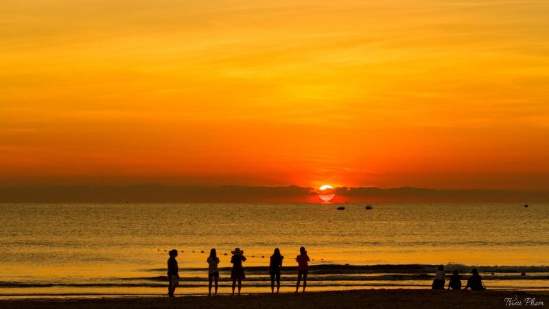 Xa xa, những chiếc thuyền đánh cá trở về sau một ngày dài ra khơi. Trên bãi cát, những người du khách thong thả đi bộ dọc theo bờ biển, đôi khi dừng lại để ngắm nhìn hoàng hôn, thả hồn vào không gian yên bình của biển cả. Những cơn gió nhẹ lướt qua, mang theo mùi muối của biển, như một sự an ủi, một sự xoa dịu cho tâm hồn.