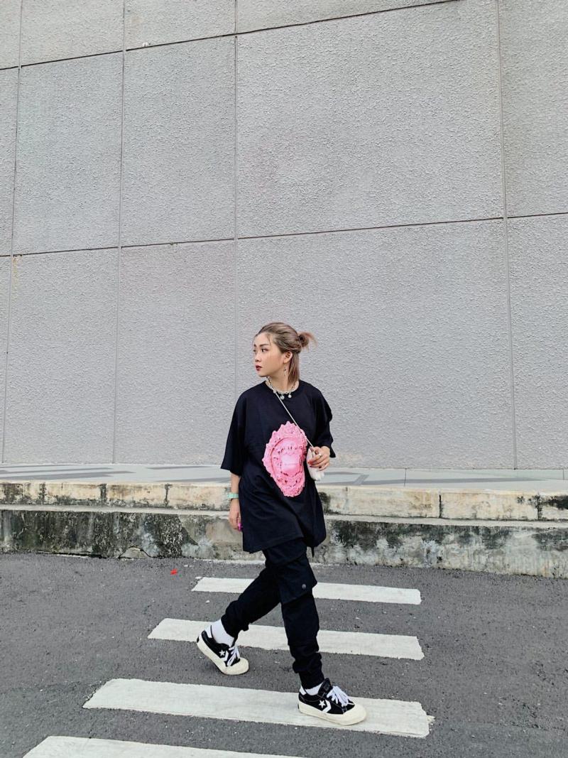 Áo thun oversize có form khá rộng, nếu bạn nào thích trẻ trung năng động thoải mái thì rất hợp. Nhưng không phải dáng người nào cũng hợp với kiểu áo này. Nếu bạn là kiểu người gầy và thấp thì không nên chọn áo oversize vì nó sẽ khiến bạn lùng thùng. Còn nếu ai gầy nhưng cao thì lại rất hợp. Với kiểu diện áo thun oversize bỏ ngoài quần hoặc váy, chúng ta có thể thoải mái sử dụng quần âu, quần kaki, quần jean hay váy xòe, váy chữ A… đồng thời mix chúng với giày sneaker, boot cao gót hay giày mule… Tuy nhiên, hãy đảm bảo rằng set đồ của bạn tạo được sự cân đối về cả độ rộng lẫn chiều dài so với vóc dáng ví như tránh mặc quần ống rộng cùng áo oversize khi có dáng người nhỏ bé vì sẽ rất dễ bị “dìm”.