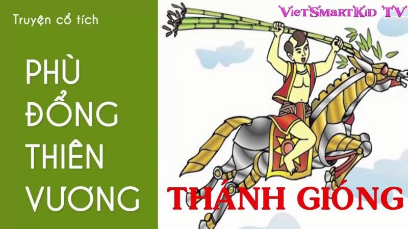 Thời Hùng Vương thứ sáu, ở làng Gióng có cặp vợ chồng ông lão tuy chăm chỉ làm ăn và nổi tiếng là phúc đức nhưng không có con. Một hôm, bà vợ đang làm đồng thấy một vết chân to liền ướm chân vào. về nhà bà mang thai và sau mười hai tháng thì sinh ra một bé trai khôi ngô tuấn tú. Điều kì lạ là mãi lên ba tuổi, cậu bé vẫn chưa biết đi, chảng biết nói, biết cười.
