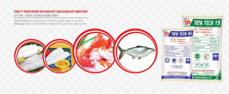 Công ty TNHH MTV Công nghệ mới Thịnh Phát có nguồn nguyên liệu nhập khẩu từ những đối tác uy tín hàng đầu và sự hợp tác với các chuyên gia hàng đầu. Các sản phẩm của công ty luôn đạt tiêu chuẩn chất lượng cao, bảo quản được lâu và không gây hại cho sức khỏe. Công ty có các sản phẩm phụ gia thực phẩm đa dạng và phong phú, phù hợp với nhiều loại thực phẩm khác nhau như thủy hải sản, nông sản,… Một số sản phẩm tiêu biểu của công ty là: New Tech 45, New Tech 19, Food Tech B, Matodextrin, Acid Citric,…Công ty có hệ thống quản lý chất lượng hàng đầu, được chứng nhận ISO 22000:2005, HACCP, GMP, HALAL, tuân thủ tuyệt đối các quy định về vệ sinh an toàn thực phẩm và luôn cập nhật công nghệ mới. Công ty có thị trường rộng lớn, không chỉ ở trong nước mà còn xuất khẩu sang nhiều quốc gia khác.