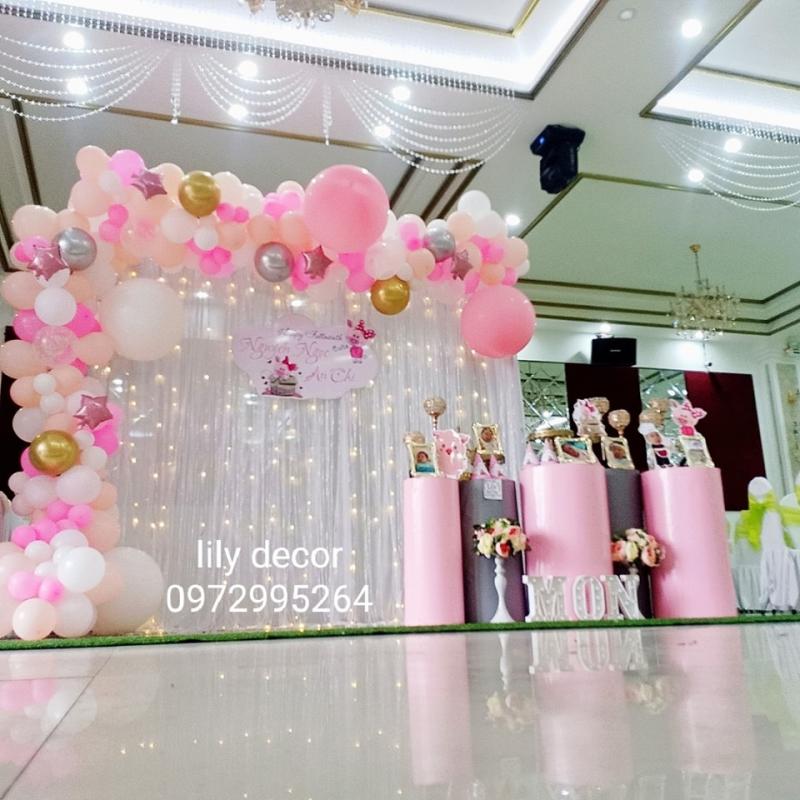 Lily decor là địa chỉ chuyên trang trí tiệc trọn gói (sinh nhật, thôi nôi, đầy tháng, phông cưới, bàn tiếp đón) phong cách hiện đại, giá cả hợp lý, thiết kế các set tự trang trí theo chủ đề, in tên và tông màu tùy thích chỉ từ 190.000 đồng đến 500.000 đồng, nhận bán sỉ và lẻ bóng bay, bóng hình, bóng chữ đủ kiểu giá tốt, không qua trung gian, đảm bảo chất lượng cao, giá thành rẻ nhất đến tay quý khách hàng. Đảm bảo những phụ kiện trang trí sinh nhật mà shop cung cấp là đẹp nhất, ấn tượng nhất và mới nhất.