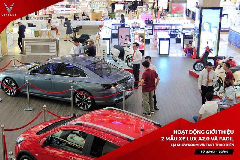 - Không gian phòng trưng bày với đầy đủ mọi dòng xe thương hiệu Việt Nam đang gây sốt trên thị trường hiện nay bao gồm VinFast Fadil 2019, VinFast Lux A2.0 2019, VinFast Lux SA2.0 2019. Khi Khách hàng tới showroom có nhu cầu mua xe VinFast để sử dụng hàng ngày hoặc muốn mua xe chạy dịch vụ, khách hàng sẽ được tư vấn giúp bạn chọn mua được mẫu xe phù hợp với khả năng tài chính và sở thích.