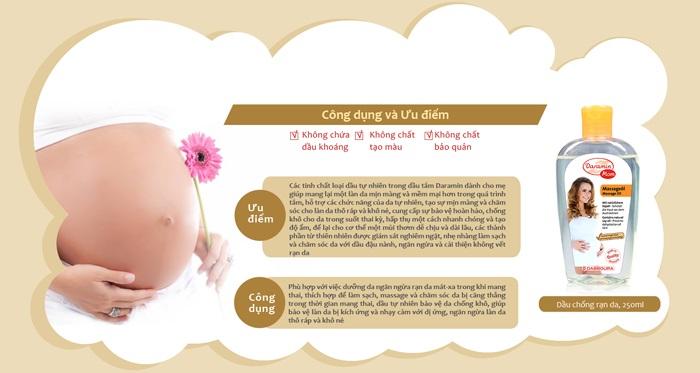 - Nuôi dưỡng và duy trì độ ẩm cho làn da, giúp ngăn ngừa ở mức tối đa sự hình thành các vết rạn da cho mẹ trong suốt thai kỳ.