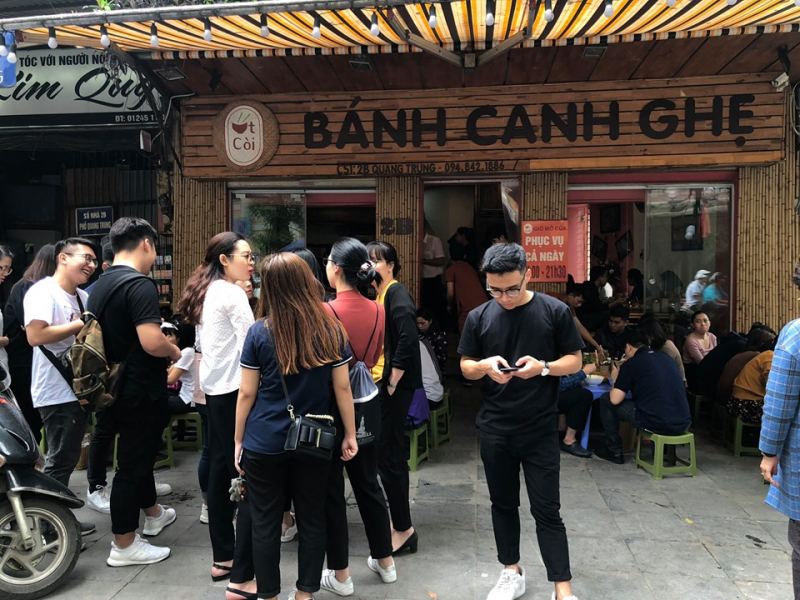 Gọi điệnTrước đây, nhiều người Nam ra Hà Nội làm việc thèm bát bánh canh phải lùng sục khắp ngõ ngách mới tìm được một quán ưng ý để thỏa mãn cơn thèm. Nhưng bây giờ, Hà Nội nhiều quán bánh canh lắm, tuy nhiên nhắc đến bánh canh người Hà Thành vẫn thường gọi tên Quán Bánh Canh Ghẹ Út Còi. Quán Út Còi bắt đầu mở bán vào năm 2014, hiện nay là quán bánh canh có lượt khách ra vào đông nhất. Chính bởi thế, giờ cao điểm ghé quán còn không có cả chỗ ngồi.