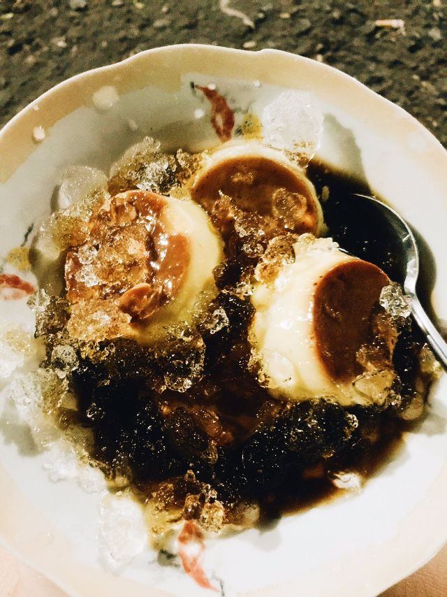 Chiếc bánh flan to tròn đẹp mắt nằm giữa đá bào. Bánh Flan Ngọc Ngân ăn cùng cà phê vừa ngọt vừa đăng đắng mới thích thú làm sao. Ăn từng chút mới cảm nhận rõ độ beo béo tuyệt vời của bánh, không chỉ béo ở đầu lưỡi thôi mà vị béo còn tan đều trong miệng nhưng không quá ngọt đến gắt cổ đâu nhé. Nguyên liệu của bánh flan khá đơn giản nhưng vẫn được Bánh Flan Ngọc Ngân ưu tiên vệ sinh, thế nên bạn không phải nghi ngại khi một chiếc bánh flan thơm ngon mà lại có mức giá cực kỳ "hạt dẻ" của địa điểm này. Thật sự, những ai đã một lần thử ăn bánh flan ở Bánh Flan Ngọc Ngân rồi thì chắc không bỏ được, chỉ có nghiện và trở thành khách quen của quán thôi đấy.