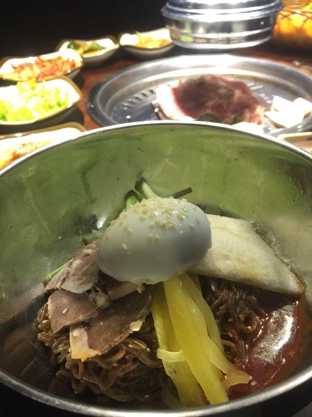 Nếu một ngày bạn lang thang muốn tìm một món mát lạnh ngày hè thì Mr.BBQ & SsAm cũng là cái tên rất đáng được bạn “ngó ngàng” đến. Mì lạnh ở đây bạn có thể lựa chọn mì nước hoặc mì trộn với một cơ số cái thể loại “topping” từ thịt bằm, trứng cho đến dưa chuột, củ cải.