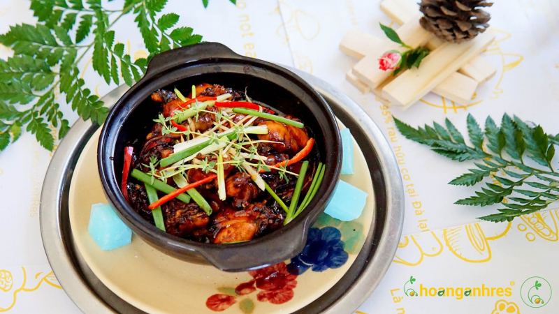 Hoang Anh Restaurant nổi tiếng với hai món đặc sản là cháo ếch và lẩu ếch. Cháo ếch rất thơm với thịt ếch rai, chắc thịt, không bị bở. Lẩu ếch với nước dùng thơm, nêm nếm vừa miệng, chấm thứ nước sốt được nhập khẩu trực tiếp từ Thái Lan.Ngoài ra, tại quán ăn ngon nức tiếng này, bạn cũng có thể thưởng thức các món ăn hấp dẫn khác như ba chỉ cuốn nấm nướng, cơm chiên Tomyum, bò xào, khoai tây chiên... Hoang Anh Restaurant tự tin là nhà hàng đầu tiên và duy nhất sử dụng 95% là thực phẩm là sản phẩm rau củ hữu cơ được thu hoạch từ chính những vườn rau của chính mình - Hana Garden, để mang đến gia đình bạn những món ăn lành và ngon nhất!