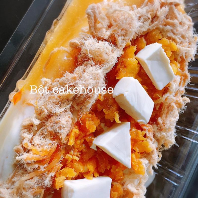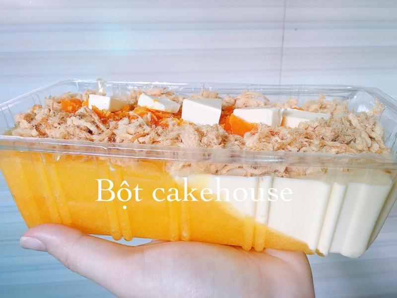 Khi thưởng thức bạn sẽ cảm nhận được bánh mềm, nhân phô mai ngập bánh, thêm chút chà bông quá chuẩn vị luôn. Ngoài ra, Bột cakehouse còn có phần sốt phô mai rất ngon, nếu bạn muốn thưởng thức nhiều vị ngon hơn có thể chọn mua bánh bông lan phô mai trứng muối, với phần sốt phô mai thần thánh mặn mà, thơm béo ăn đến đâu thích đến đó. Ngoài bánh cỡ nhỏ, thì Bột cakehouse cũng có nhận đặt bánh dạng ổ cho các dịp tiệc nhé.