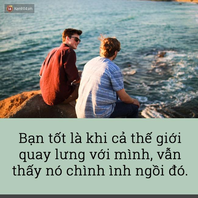 Bạn tốt ở đây không nhất thiết phải là bạn thân, vì cuộc đời này trắng đen lẫn lộn, nhiều lần, bạn thân lại là những người đâm sau lưng khiến ta đau đớn nhất. Nếu bạn có một người luôn kề bên mỗi khi bạn cần, sẵn sàng lắng nghe mọi tâm sự của bạn, hay chỉ đơn giản, lăng yên cùng bạn gặm nhấm nỗi buồn, thì chúc mừng bạn, bạn đã có một người bạn tốt ! Bạn tốt, không có nghĩa sẽ cùng bạn đi quẩy khắp thế gian, hay cùng nhau đón những tia nắng sớm, mà là người có thể cùng bạn đi qua những niềm đau, sẵn sàng chịu ướt trong cơn mưa cùng bạn. Khi bạn có một người như vậy kề bên, hãy luôn trân trọng và thật tâm với họ, bởi vì những người có thể cùng ta chia sẻ niềm vui rất nhiều, nhưng không phải ai cũng có thể cùng bạn vượt qua nỗi buồn.