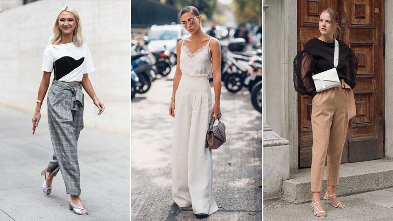 Áo trễ vai kết hợp với quần tây