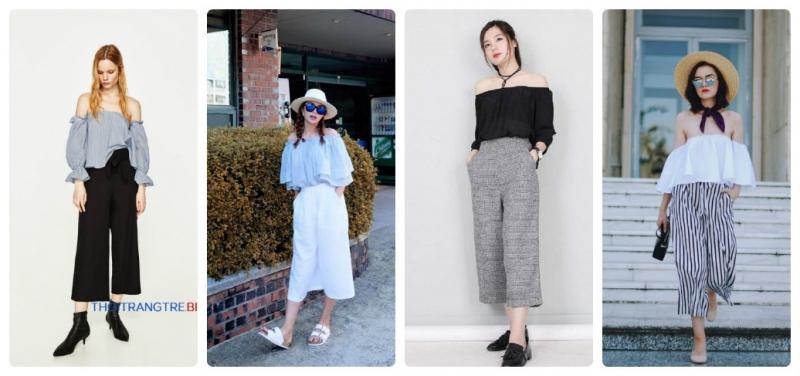 Áo trễ vai với quần culottes