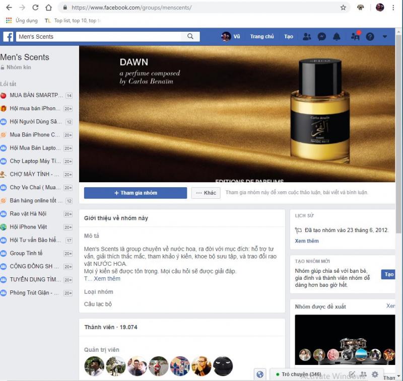 Đây là Group bán hàng được phát triển để chuyên kinh doanh các mặt hàng là nước hoa dành cho nam, lượng thành viên trên Group hiện tại thực sự không nhiều với 25.800 thành viên tuy nhiên lượng tương tác người dùng trên Group là rất tốt, nếu không tin các bạn có thể lướt qua một vòng các nội dung trên Group sẽ thấy rõ điều này.