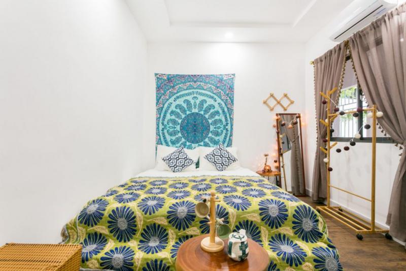 Rustical Homestay tạo được không gian thanh bình với thiết kế mở, xung quanh là cây xanh, đầy nắng và gió mang lại bầu không khí trong lành tự nhiên. Phòng ngủ cũng được chăm chút thơ mộng với bức tranh vải thổ cẩm họa tiết vô cùng phong phú, giường đệm được trải thẳng thớm, mượt mà. Đã đến với Rustical Homestay thì bạn chỉ có thể thích mê mà thôi. Đây thật sự là hotel giá rẻ ở Sài Gòn mà bạn nhất định phải note vào danh sách "must-stay" của mình đó.