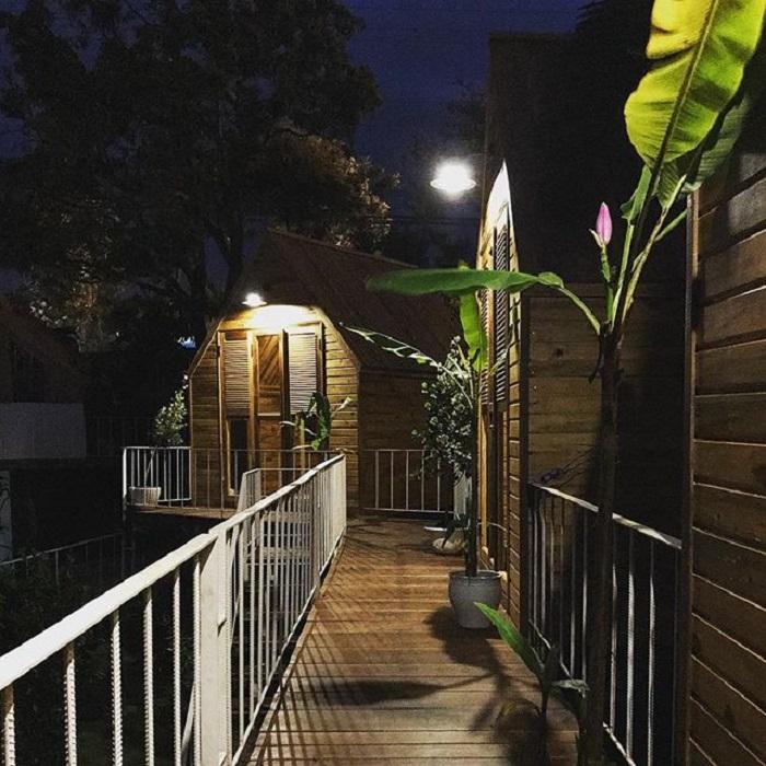 Những vật dụng được thiết kế tối giản nhất, với gam màu nâu trầm, trắng xám chủ đạo, khiến các phòng tại homestay trở nên rộng rãi, thoải mái, ấm cúng, gần gũi hơn. Ngoài dãy nhà gỗ In the Pines còn có khu nhà kính được dựng lên như nhà kính trồng hoa. Mái được che bằng dây leo, xung quanh được treo rèm trắng, phủ lá cây lên trông như khu vườn cổ tích. Ban đêm, ánh đèn vàng hắt lên, hương thơm tỏa ngát xung quanh, khiến không gian trở nên lãng mạn và thơ mộng. Ngoài ra, điểm thú vị của homestay này chính là những “bé cưng” tên Four hay Five vô cùng dễ thương, thân thiện chỉ chực nằm lăn ra cho khách cù bụng rồi thiu thiu ngủ. Cũng nhờ các “em” ấy mà bạn sẽ có được những bức hình siêu sống ảo nữa đấy.