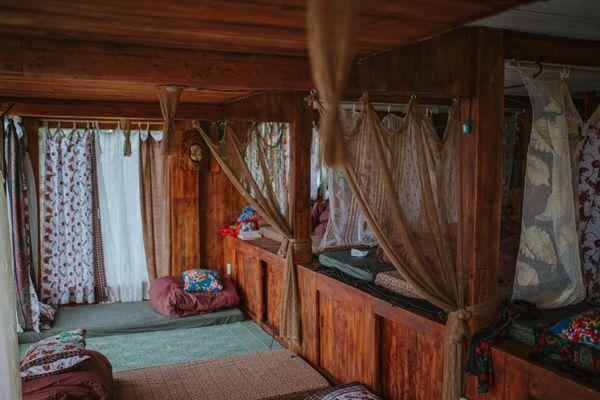 Gọi điện“Nhà của Tre” nằm bình yên trong góc, đặt chân đến Tre’s House lần đầu, không ít bạn sẽ tự hỏi “đây có chắc là homestay hay không?” Mọi thứ ở Tre’s House ngẫu hứng đầy chất nghệ sĩ. Bốn bề xung quanh đều là những món đồ cũ tái chế, hầu hết đều bằng gỗ, bằng tre. Ở Dorm của Tre’s House còn là một cảm giác rất khác, tại đây chỉ có khoảng 10 giường, nhưng mọi thứ đều được sắp xếp rất hợp lý. Mỗi giường đều có một tấm màn ngăn cách, đặc biệt nằm ở đây, bạn có thể ngắm nhìn cả một bầu trời, ánh sáng tự nhiên tràn ngập khắp phòng bởi tầng mái được lợp từ những tấm tôn trong suốt, rất thú vị phải không.