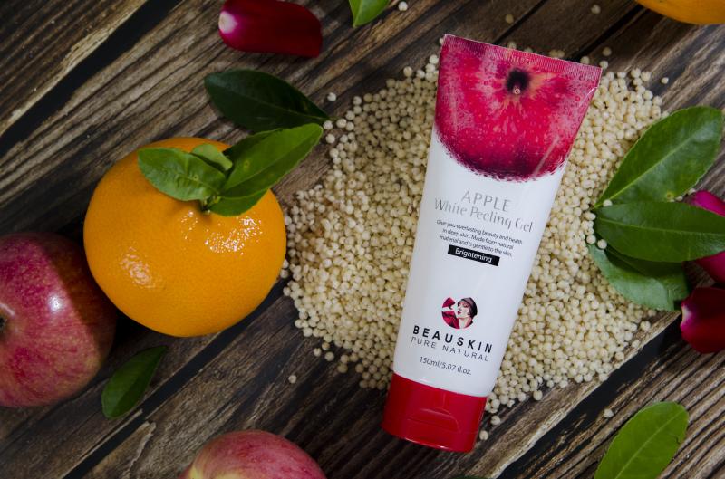 Tẩy da chết làn một trong những sản phẩm không thể thiếu trong bộ sản phẩm chăm sóc da của các chị em. Tẩy tế bào chết dạng gel Beauskin Aplple White Peeling Gel của Hàn Quốc là một lựa chọn không tồi để góp mặt trong bộ chăm sóc da. Sản phẩm thuộc thương hiệu mỹ phẩm Beauskin là một thương hiệu mỹ phẩm đến từ Hàn Quốc. Beauskin nổi tiếng với các dòng sản phẩm chăm sóc mặt, dưỡng tay, chăm sóc body... Sản phẩm tẩy da chết này của nhà Beauskin giúp loại bỏ hoàn toàn tế bào chết một cách nhẹ nhàng. Sản phẩm có nguồn gốc chiết xuất từ thiên nhiên, có thể sử dụng với mọi loại da.