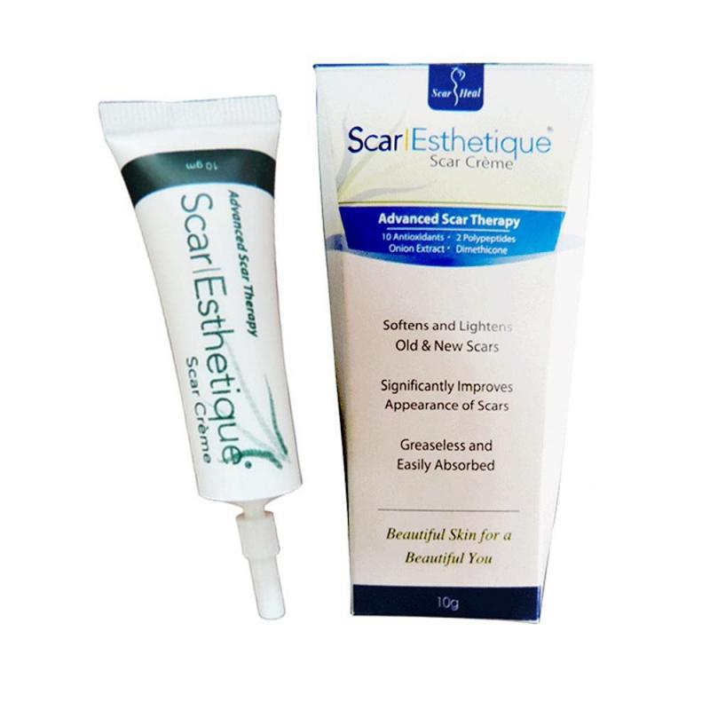 - Scar Esthetique là một loại kem với 23 thành phần hoạt động trong đó có 10 chất chống oxy hóa, 2 polypeptide, silicone lỏng và các loại thực vật tự nhiên để cải thiện các vết sẹo. Không gây kích ứng da.