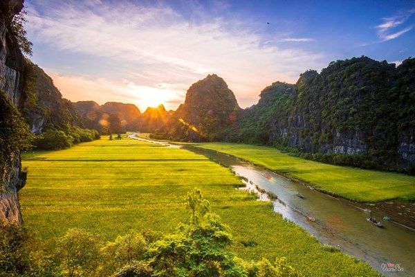 - Thắng cảnh Tràng An: Tràng An sở hữu khung cảnh hùng vĩ, thơ mộng của những núi đá vôi trùng điệp, những thung lũng lúa chín vàng và những hang động kì bí. Để chiêm ngưỡng hết cảnh đẹp của danh thắng Tràng An bạn có thể sẽ mất từ 3 – 4 tiếng ngồi thuyền chèo. Nhờ sở hữu không gian hoang sơ, đẹp như một bức tranh thủy mặc mà Tràng An đã được Unesco công nhận là di sản thiên nhiên và văn hóa của thế giới. Đặc biệt, nơi đây từng được đạo diễn Jordan Vogt Roberts chọn làm bối cảnh cho bộ phim bom tấn Kong – Đảo đầu lâu. Giá vé: 200.000 Đ/người lớn – 100.000 Đ/trẻ em