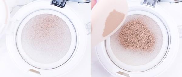 - Apply cushion trên da bằng cách ấn miếng bông nhẹ và đều trên bề mặt da.