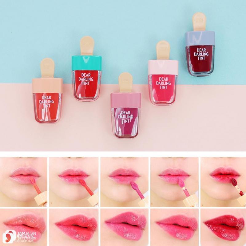 Son môi ETUDE Dear Darling Tint là dòng son hot với chất son được đánh giá là xuất sắc. Son có thiết kế cực kỳ dễ thương, kiểu dáng nhỏ xinh hình que kem đã làm tan chảy biết bao nhiêu cái nhìn của mọi cô gái, đó là son Etude House Dear Darling. Đa số mỹ phẩm Hàn Quốc đều có thiết kế rất trẻ trung và dễ thương, nhưng với kiểu dáng que kem này quả thực rất mới lạ và thú vị.
