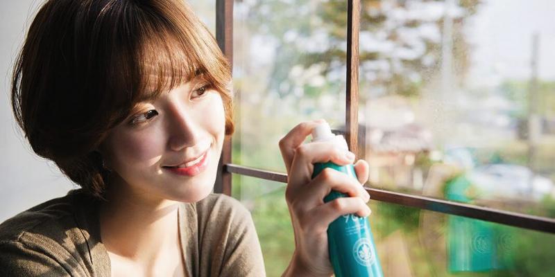 - Giữ chai xịt thẳng đứng song song với khuôn mặt cách làn da 20 - 30cm, nhắm mắt nhẹ nhàng nhấn nút xịt giữ nó và di chuyển đầu xịt theo đường tròn bao quanh mặt rồi thả nút xịt da.