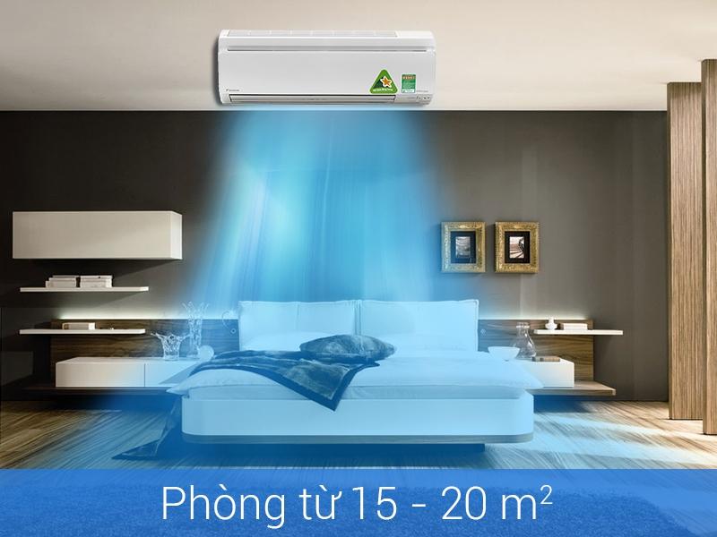 - Phạm vi làm lạnh hiệu quả: Từ 15 - 20m² (từ 40 đến 60 m³).
