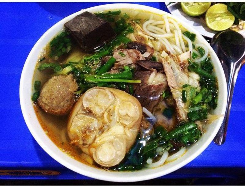 Gọi điệnTuy là một món ăn có xuất xứ từ Huế mộng mơ, nhưng Bún Bò Huế đã nhanh chóng ghi điểm trong lòng thực khách Hà Thành. Bát bún bò Huế đầy đủ dinh dưỡng với thịt bò, giò heo là lựa chọn được nhiều người tin tưởng, đặc biệt là với dân văn phòng. Sợi bún mềm nhưng không hề bị nát, nước dùng đậm đà là yếu tố giúp món ăn này được thực khách ghi nhớ mãi. Bún bò Huế thêm chút ớt cay là sự lựa chọn tuyệt vời cho bữa sáng. Bạn có thể thưởng thức món ăn này tại quán Bún bò Huế An Cựu.