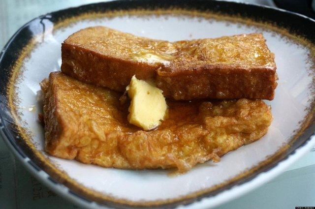 Bánh mì nướng Hồng Kông là một loại bánh được biến thể từ bánh Toast kiểu Psp truyền thống. Món bánh mì nướng Hồng Kông nổi bật với bơ lạc và mứt được phết rất nhiều, ngâm trong trứng đánh, chiên với bơ và ăn kèm với thật nhiều siro và bơ. Món này rất được nhiều người yêu thích đồ ngọt yêu thích và lựa chọn để làm bữa sáng cho mình. Khi thưởng thức món bánh mì này người ăn vừa có thể cảm nhận được sự ngọt và béo xen kẽ đó là sự giòn của bánh mì.