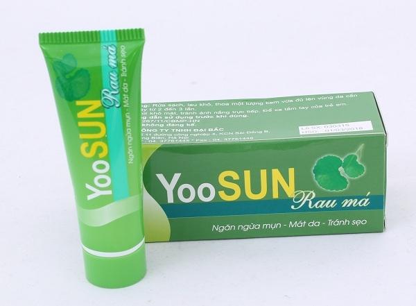Yoosun Rau Má được biết đến là một sản phẩm giúp điều trị mẩn ngứa, rôm sảy, ngừa mụn, làm mờ sẹo, giảm thâm do mụn để lại và giúp da mềm mịn hơn. Yoosun Rau Má chứa thành phần của rau má có chứa acid Asiatic, acid madecassic tác động đến quá trình hình thành da don, kích thích cho quá trình phát triển nhanh hơn giúp nhanh lành vết thương, ngăn ngừa sẹo bị để lại.