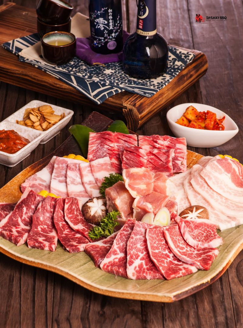 Với nguồn nguyên liệu sạch, phong phú, được tuyển chọn kỹ càng, Tasaki BBQ Lotte Center mong muốn mang đến cho thực khách các món nướng lẩu buffet độc đáo, chất lượng, ngon đúng chuẩn hương vị Nhật Bản, có thể kể đến: Sườn bò Wagyu không xương thượng hạng, Thịt thăn ngoại bò lông đen Nhật, Set thịt nướng Tasaki, Set thịt Wagyu thượng hạng,… và nhiều món ăn đặc trưng khác của xứ Phù Tang khác như: Set lunch cá hồi sốt Teriyaki, Lẩu Sukiyaki, Sườn sụn gà chiên kiểu Nhật, Cơm bibimbap trứngLà một nhà hàng buffet thịt nướng cao cấp theo phong cách ẩm thực Nhật Bản, bên cạnh những món ăn hấp dẫn, Tasaki BBQ Lotte Center còn tạo ấn tượng bởi không gian sang trọng, thanh lịch với tông màu trầm ấm cùng nhiều đường nét trang trí mang đặc trưng văn hóa Nhật Bản: ví như đèn lồng, cổng Torii hay phong cách ngồi bệt,... tất cả như cố gắng truyền hơi thở của xứ Phù Tang một cách trọn vẹn nhất đến với thực khách. Tại đây, trong sức chứa 60 khách, thực khách có thể tìm cho mình chỗ ngồi phù hợp với nhu cầu để thoải mái thưởng thức món ăn ngon và trò chuyện cùng người thân, bạn bè.