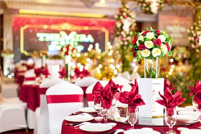 - Trang trí tiệc đẳng cấp: phòng tiệc được bố trí và thiết kế bởi chính đội ngũ Wedding Planner chuyên nghiệp sẽ mang đến cho các cặp uyên ương một không gian sang trọng và tinh tế.