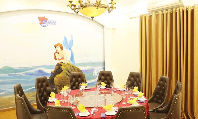 Nhắc đến Thế Giới Hải Sản, dường như ngay lập tức các tín đồ sành hải sản Hà thành đều nhất loạt nghĩ đến 8 chữ: “Con gì đang bơi, chúng tôi đều có”, câu slogan thương hiệu của nhà hàng. Có lẽ một phần do nguồn hải sản ở đây đều là nguyên liệu chính tay nhà hàng nuôi trong bể, nên thực khách có thể hoàn toàn yên tâm mà thưởng thức những món đặc sản biển xanh vừa ngon vừa sạch lại vừa tươi roi rói, đảm bảo dinh dưỡng đủ đầy. Ai đã từng một lần thưởng thức qua món ăn của nơi đây đều phải gật gù công nhận rằng nhà hàng Thế Giới Hải Sản Trần Hưng Đạo rất biết cách chinh phục thực khách bằng một thực đơn vô cùng đa dạng, muốn cá có cá, muốn tôm có tôm, muốn hấp, nướng, chiên, xào, gỏi, nộm, rang,… đều có đủ! Thực đơn đồ sộ cách chế biến độc đáo và đa dạng, bạn không chỉ có cơ hội được thưởng thức những dư vị hải sản thơm ngon nhất mà còn được trải nghiệm những phong cách chế biến khác nhau đầy ấn tượng.