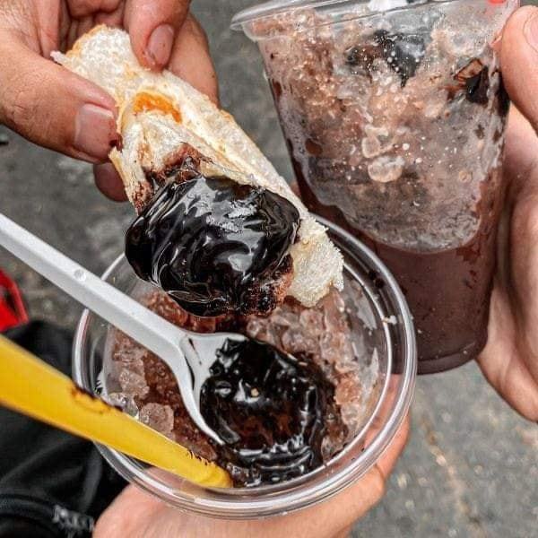Có thể mới đầu nghe đến cái tên ca cao đá, bạn sẽ nghĩ là ca cao pha sẵn rồi cho đá vào. Nhưng không phải đâu nhé. Với đôi tay tài ba của dì Tám, ca cao đặc sau khi được pha chế sẽ được chế biến thành nước ca cao đá vô cùng thơm mát.