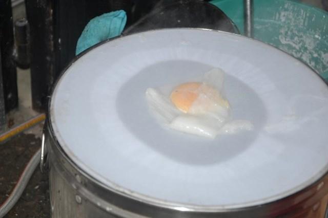 Sắn từng phần bánh cuốn trứng vuông vức cho lòng đào tan chảy ra, rồi chan thêm chút nước mắm có dằm tí ớt vào. Vị thanh thanh của nước mắm quyện với vị béo ngậy của miếng trứng khiến cho tất cả như tan chảy ra trong miệng thực khách.