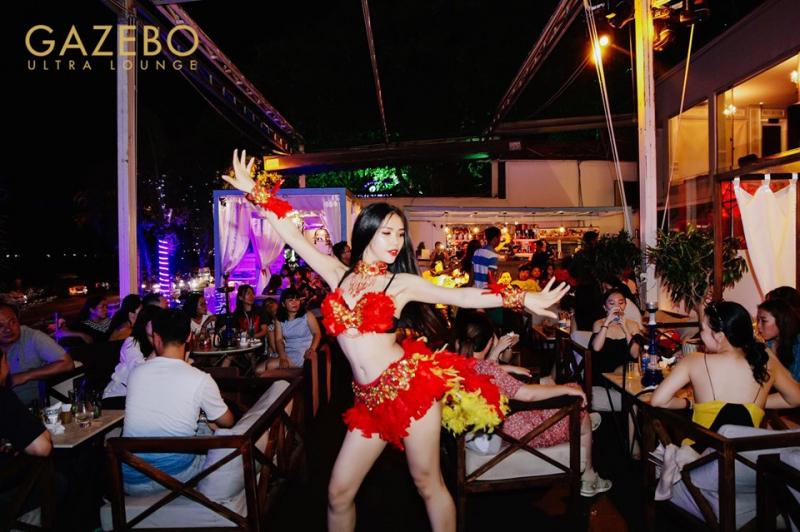 Sau hoàng hôn, Gazebo là một quán bar cực xịn, cực chất, là địa điểm tụ tập bạn bè nổi tiếng của giới trẻ Vũng Tàu. Không khí Gazebo về đêm được tạo nên bởi tiếng nhạc xập xình sôi động, không khí rộn rã, tiếng cười nói vui vẻ, thức uống thơm ngon hoà quyện vào nhau. Giá thành không quá cao cũng không quá đắt. Nếu bạn đến thành phố biển Vũng Tàu và tìm điểm vui chơi sôi động về đêm thì có thể đến Gazebo Beach Front Lounge & Cafe nhé!