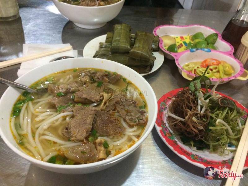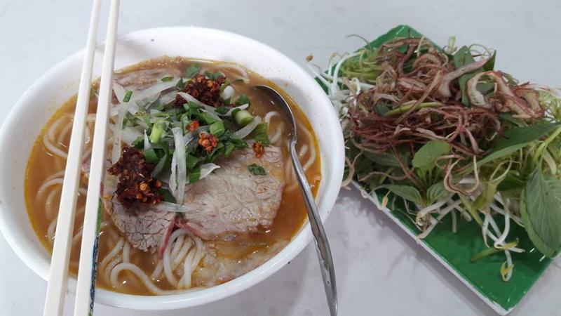 Với hương vị đặc trưng không xen lẫn với những quán bún bò khác là một trong những điểm ăn khách nhất của quán. Một tô bún tại đây khá to và đầy ắp các loại topping như thịt bò, chả thịt, chả cua,... Thịt bò vừa chín tới nên có độ mềm dai nhất định, nước lèo được hầm từ thịt và xương trong nhiều giờ cùng với nhiều nguyên liệu khác nên rất đậm đà, ngọt thanh vô cùng hấp dẫn. Đặc biệt ở đây có thêm mấy hủ sa tế và nước mắm, nếu bạn đã từng ra Huế thưởng thức các món ăn sẽ thấy vô cùng quen thuộc, khi ăn cho một ít sẽ góp phần tăng độ ngon của món bún bò.