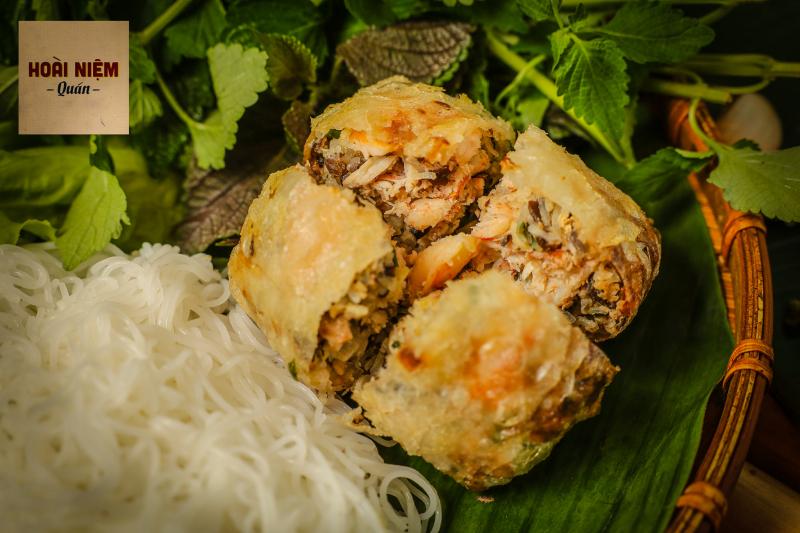 Hoài Niệm Quán còn phục vụ trà chanh và chả cốm rất ngon được nhiều người yêu thích. Vừa nhìn mẹt bún đầy đặn ở quán, thì bạn đã chẳng thể kiềm lòng mà đã xao xuyến rồi. Màu trắng của bún, sắc xanh của rau, màu vàng của nem chiên, chả cốm, đậu hũ rán vàng,... thật bắt mắt và hấp dẫn. Đậu ở đây được rán giòn nhưng không hề bị khô, chả cốm thơm. Dồi là quán tự làm, giòn từ vỏ, ngọt từ nhân, ăn cực vừa miệng. Không chỉ lôi cuốn ánh nhìn mà khi ăn bún với đậu hủ, nem chiên thêm chút rau chấm cùng với mắm tôm, bạn sẽ cảm nhận được vị ngon trọn vẹn của món ăn này. Hương vị bún đậu mắm tôm của Hoài Niệm Quán thật khó cưỡng và phù hợp với mức giá rẻ mà quán đưa ra.