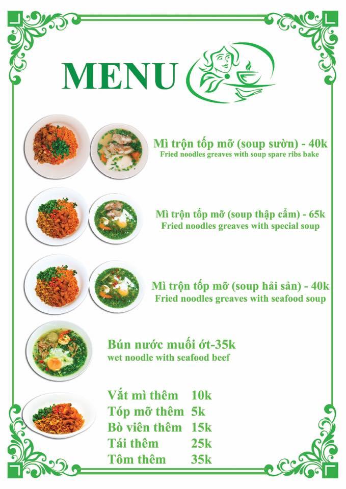 Bún tại quán Bún Nước Mì Trộn Út Tiêu được làm từ bột gạo, mềm và dai, nước dùng bỏ nhiều hành. Còn mì tóp mỡ lại mang hương vị của một món khô chính thống, nhưng do mì được trụng chín vừa phải cộng thêm topping là tóp mỡ giòn tan béo béo ăn kèm nên không hề bị ngậy hay có cảm giác khô khan đâu nhé. Để đậm đà thì nên cho đủ các nguyên liệu như chánh, ớt đặc biệt là muối ớt để có thể đánh giá vị ngon chuẩn xác nhất. Quán Bún Nước Mì Trộn Út Tiêu có không gian sạch sẽ, thoáng mát và phục vụ nhanh chóng, nhân viên thân thiện và nhiệt tình.THÔNG TIN LIÊN HỆ:Gọi điện
