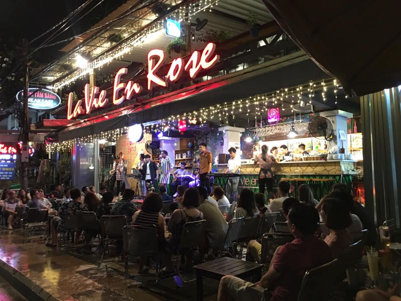 Đúng như cái tên của mình La Vie En Rose- Cuộc sống trong màu hồng đến đây bạn sẽ thoải mái làm những gì bạn muốn như đọc sách, trò chuyện và nghe nhạc Acoustic. Không gian xanh được bao đọc bởi nhiều cây, không khí mát mẻ, trong lành, đây quả là một nơi lí tưởng để thư giãn.