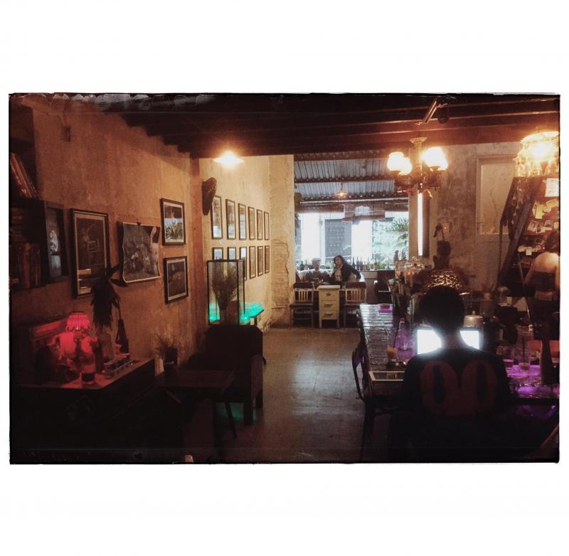 Gọi điệnTiệm Cà Phê Ghé Qua nằm trong khu chung cư Ấn Quang với nhiều dấu ấn của thời gian. Đây là khu chung cư cũ yên tĩnh, có những hàng cây xanh mướt, ngồi ở Tiệm Cà Phê Ghé Qua, các bạn có thể nhìn xuống trọn vẹn con đường đầy thơ mộng này. Bước vào không gian quán dù không hẹn nhưng ai cũng sẽ có chung một cảm giác giống nhau: một cảm xúc bâng khuâng khó tả đầy hoài niệm. Bởi tất cả mọi thứ nơi đây tưởng chừng như đều nhuốm màu thời gian: những bậc cầu thang cũ kĩ, cánh cửa quán phát ra tiếng kêu cót két,... nhưng vẫn mang hơi thở của hiện đại. Bởi chủ quán muốn mang đến cho khách những trải nghiệm xen lẫn giữa quá khứ và hiện đại.