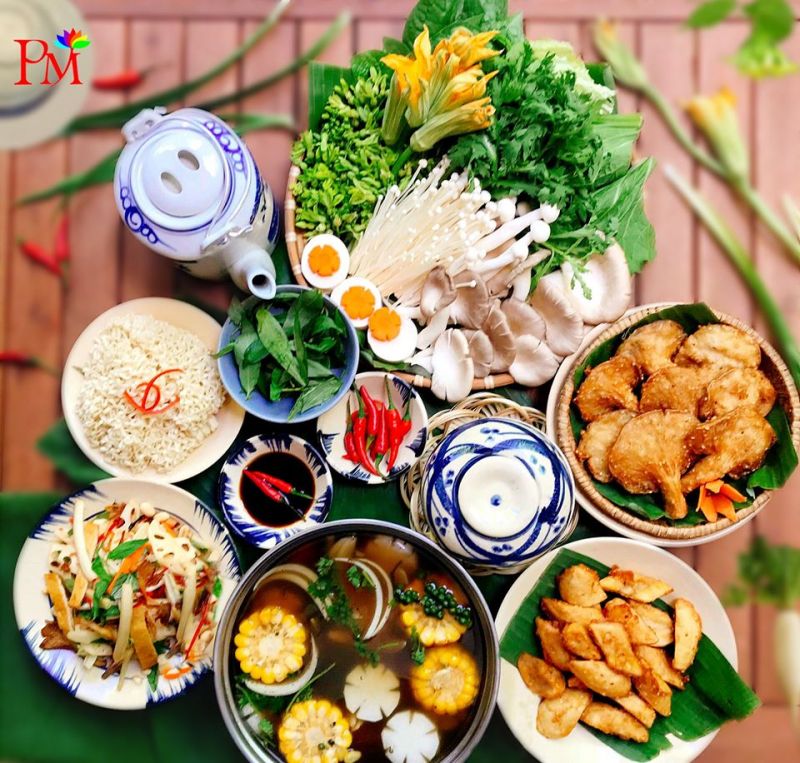 Một số món nổi bật tại nhà hàng như nem vuông, gỏi thủy tinh, trứng cuộn rau củ, đậu hũ chiên giòn, cà ri xanh, cà ri đỏ, nấm ấp củ dừa, cơm chiên trái thơm, củ sen lắc phô mai,... Bạn nên lưu ý quán thường đông khách nhất là buổi tối, cuối tuần hoặc các ngày lễ nên bạn nên đặt chỗ trước.