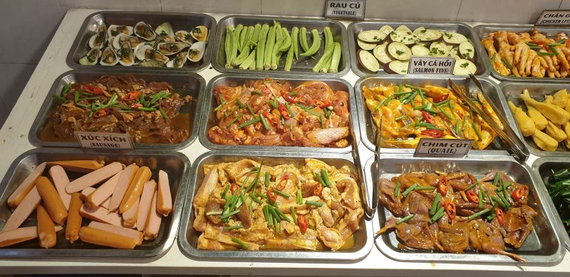 - Các món nướng hấp dẫn từ thịt bò, thịt heo nhập khẩu từ Mỹ - Úc có đầy đủ giấy xác nhận an toàn vệ sinh của nước nhập khẩu, hải sản tươi ngon cùng các món ăn kèm hấp dẫn, sốt chấm bí truyền ngon "nhức nhối"