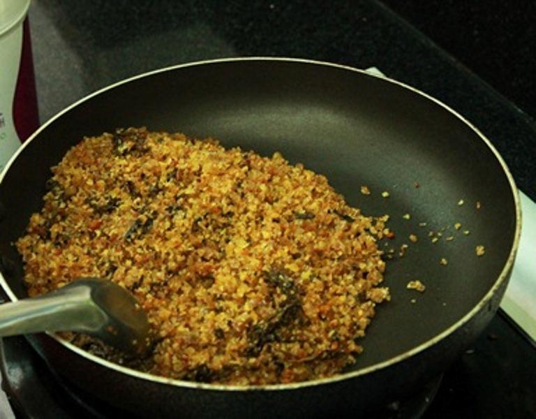 - Bước 1: Đổ muối ra chảo, rang đều tay trong lửa vừa khoảng 3 phút, đảm bảo muối đã nóng đều.