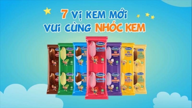- Kem Vinamilk hộp và kem nhóc với các vị hương trái cây