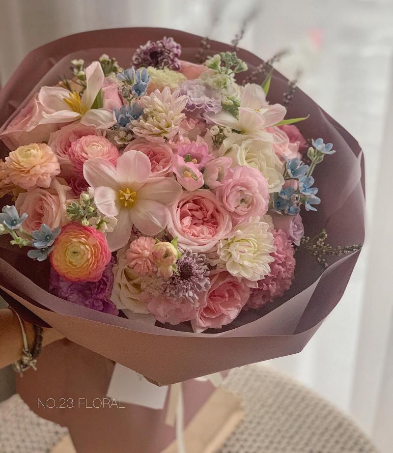 Tại No.23 Floral kỹ thuật cơ bản cắm giỏ, bó hoa không còn bị gò bó theo lối mòn mà được "upgrade" tư duy tổng thể, góc nhìn khác đi.. sản phẩm hoa ở đây tạo nên trông bay bổng và " thơ" hơn rất nhiều. Các loại hoa vô cùng phong phú từ Hà Lan, Ecuador, Nhật Bản, Nam Phi, Côn Minh...về mới hàng sáng tại tiệm sẽ được sơ chế và sẵn sàng lên thành phẩm theo order của từng khách hàng. Mỗi sản phẩm tại nhà No.23 Floral đều có tag treo hướng dẫn bảo quản hoa bằng tiếng Việt và cả tiếng Anh, các bạn nhận hoa nhớ xem để chăm sóc hoa được tươi mới và bền lâu. No.23 Floral sẽ mang đến cho hội chị em những bó hoa đầy vẻ đẹp ngọt ngào, và ấn tượng nhất mà hiếm nơi nào sánh được.