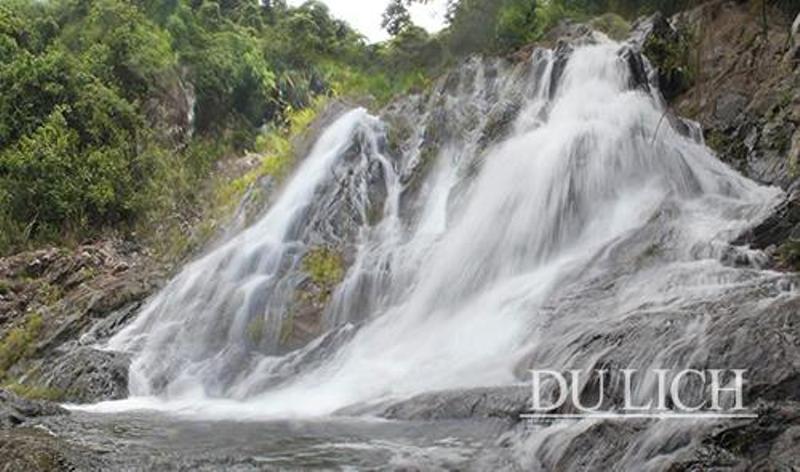 Thác Khe Lạnh dồi dào, nước tuôn trào quanh năm, dòng nước đổ xuống khá êm đềm -
