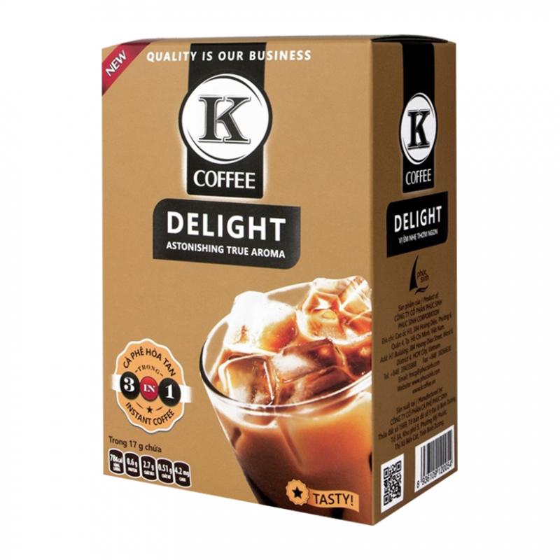 - Cà phê sữa hòa tan K Delight 3in1: có vị ngọt thơm béo hòa quyện cùng với vị thơm của vị cà phê.
